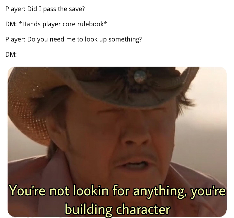 arrow-up11arrow-down1imageTtrpg players be likesh.itjust.worksiAmTheTot@sh.itjust.works · 9 months agomessage-square0linkfedilink