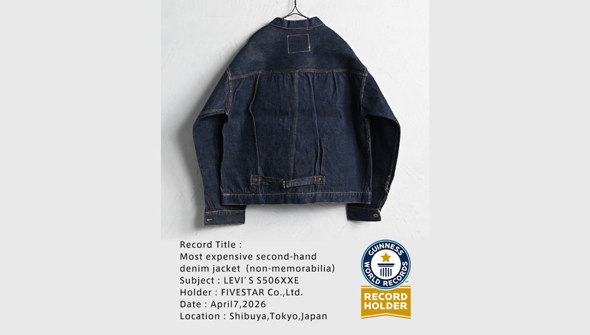 TOKYO,2026年4月7日——由執行長Masayuki Sakuma率領的FIVESTAR Co., Ltd.宣布,旗下以5,500萬日圓購入的極具歷史價值的復古丹寧夾克「LEVI’S S506XXE」,已於2026年4月7日正式獲得健力士世界紀錄™認證。