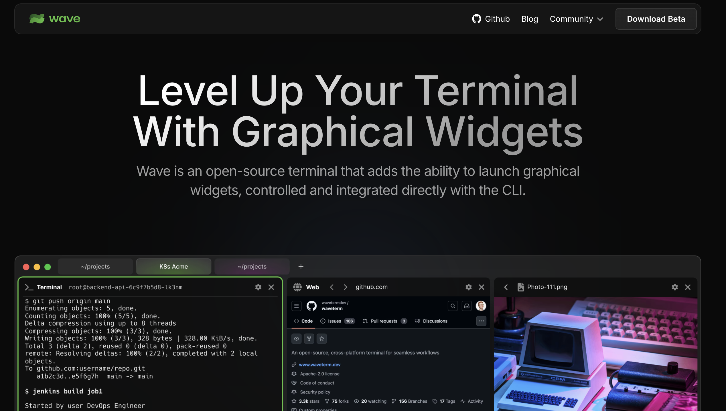 Level Up Your Terminal With Graphical Widgets. An open-source terminal that adds the ability to launch graphical widgets, controlled and integrated directly with the CLI.