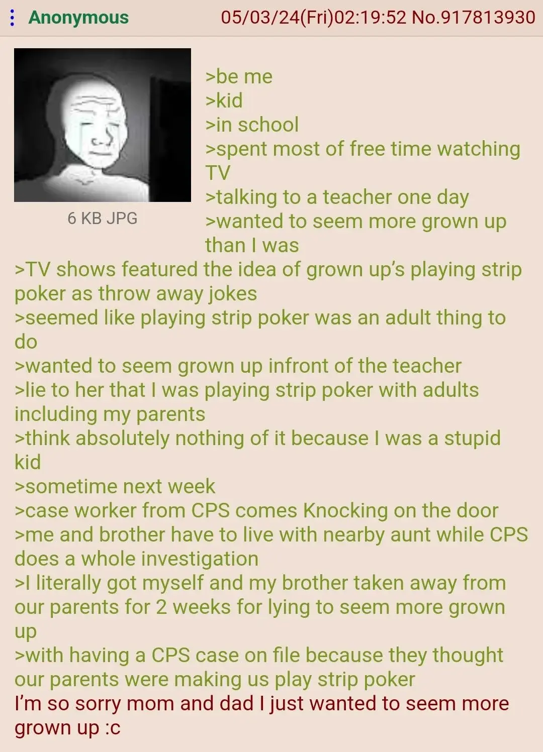 witchdoctor@lemmy.basedcount.com to 4chan@lemmy.world · 2 years agoAnon is stupidlemmy.basedcount.comimagemessage-square1linkfedilinkarrow-up1121arrow-down13