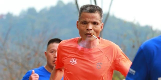 The news outlet reported that the man, known as “Uncle Chen,” completed the Xiamen Marathon in three hours and 33 minutes but was disqualified for violating the race’s rules against smoking on the course.