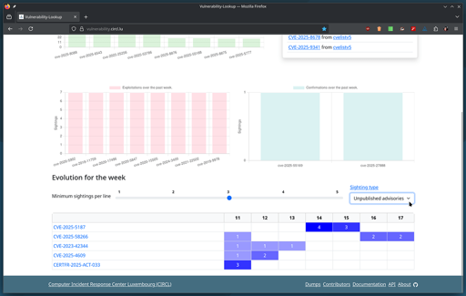 The dashboard now highlights vulnerabilities discovered via our sighting tools, including scraping social networks, MISP, Nuclei templates, Shadowserver, Gist, and more. This gives you better visibility of unpublished advisories.