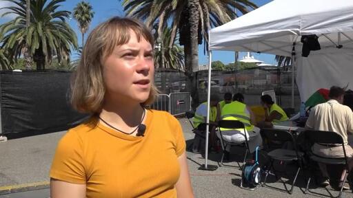 Dozens of people gathered on Saturday at the port of Barcelona where a flotilla will set sail for Gaza on Sunday. Swedish activist Greta Thunberg is hoping to break… the naval blockade imposed by Israel along the coast of the Gaza Strip since 2007… (AP video and production by Hernan Munoz)
