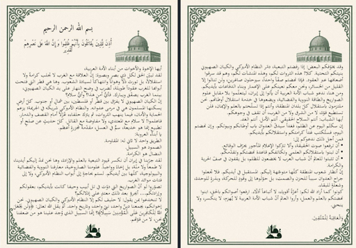 Rise up. Speak the truth with courage and clarity. Do not allow hostile media to distort your reality. Unite your strength, cultivate knowledge, and build independence with your own hands. Show the world that the Arab youth will not bend to oppression, will not bow to tyranny, but will rise for justice, dignity, and freedom.