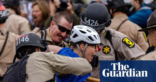 Officers reportedly tackled and dragged several people after authorities told demonstrators to stay in ‘protest zones’