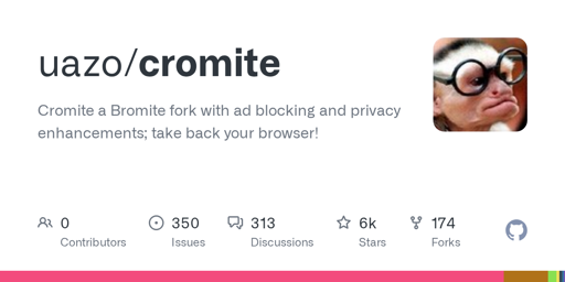 mistermodal@lemmy.ml to Privacy@lemmy.ml · edit-214 days agoCromite a Bromite fork with ad blocking and privacy enhancementsgithub.comexternal-linkmessage-square41linkfedilinkarrow-up1107arrow-down12file-text