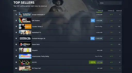 maam@feddit.ukM to Buy European@feddit.ukEnglish · 2 months agoHalf of the games on the Steam top ten list are Swedish 🇸🇪feddit.ukimagemessage-square0linkfedilinkarrow-up11arrow-down10cross-posted to: [email protected]