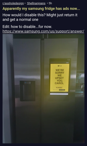 arrow-up1820arrow-down1imageRefrigerator ads are finally here!discuss.onlineByteOnBikes@discuss.online to A Boring Dystopia@lemmy.world · 21 days agomessage-square320linkfedilink