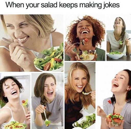 in that-one-dude-who-narrates-every-single-national-geographic-documentary voice "but in the forest, things are dangerous. the fairly common salad (salad dalas) is unaware that a particularly hungry vegan upper middle-class suburban mother (rehtom nabrubus, ssalc-elddim reppu nagev), this particular one in her 30’s, is stalking in the shadows. The salad’s only form of defense? A knack for witty, funny jokes that prevent the middle-aged vegan from eating it.