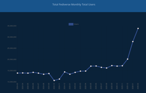 Just FYI everyone, this spike is sort of a glitch and its quite obvious just from looking at how steep the curve is. It all comes from nodebb which is a forum software and i guess they switched on federation on 11.01.2026 which gave us this magical bump.
