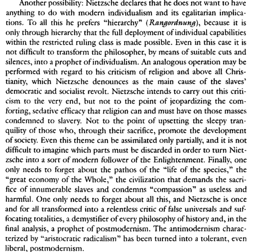 You would need to read Losurdo’s book on liberalism to understand the inherent exclusionary clause of liberalism, which is the dominant ideology of the West. It infects materialist thinking, including yours and mine. It’s something you have to consciously fight on a daily basis.
